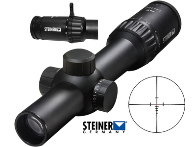 Steiner P4Xi Rifle Scope 30mm Tube 1-4x 24mm Illuminated Reticle w/Throw Lever